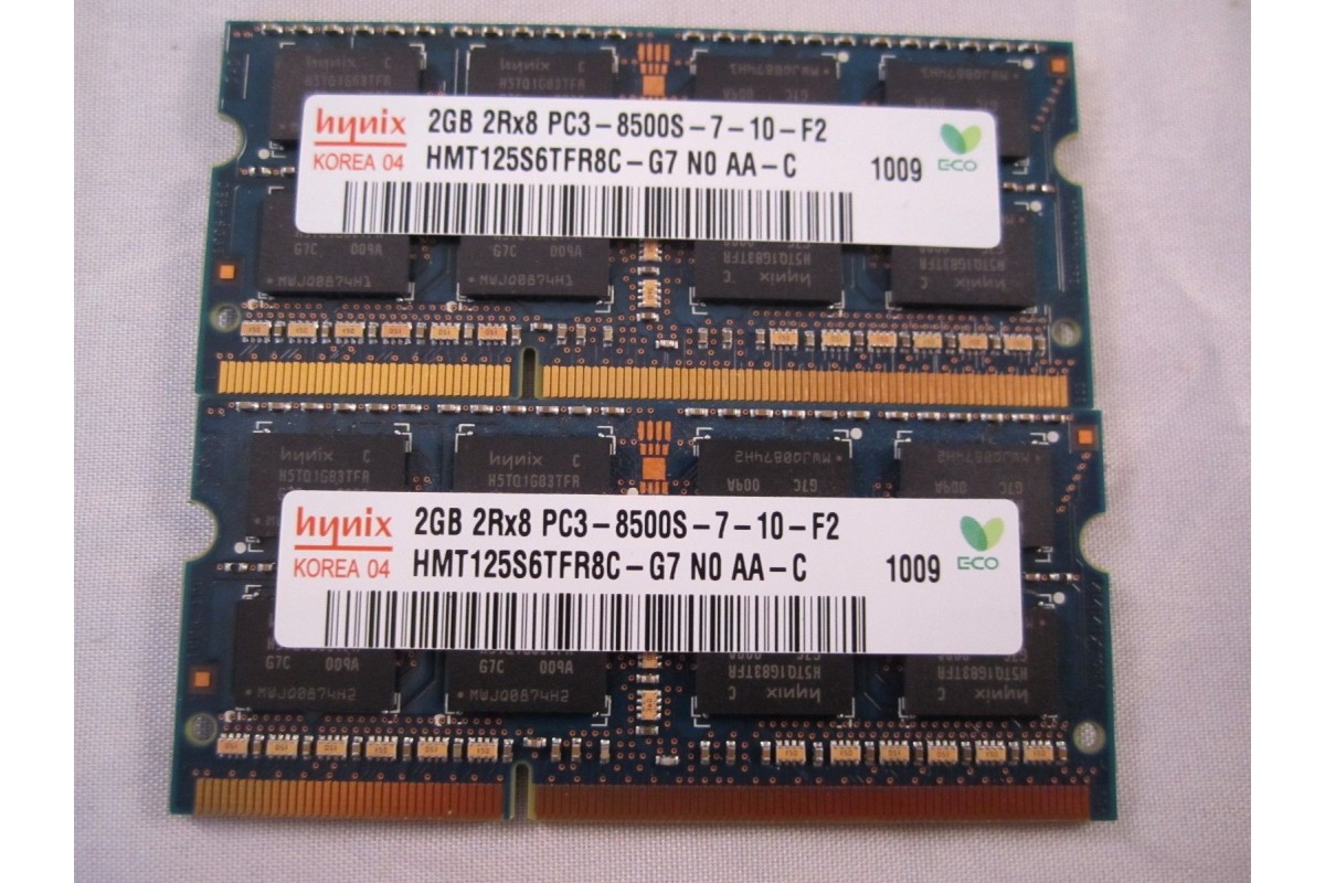 - 2 - 2 GB Hynix Branded PC3-8500 Laptop Memory Modules.